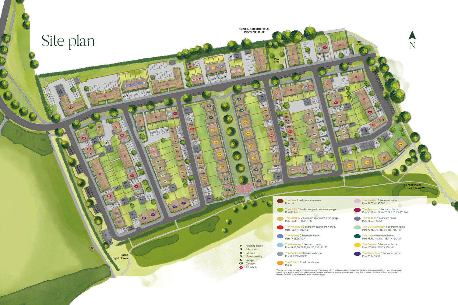 The site plan which can be found on this page, has been produced for home identification purposes only and is not to scale. The development layout, landscaping and tenure of all dwellings may be subject to change throughout the course of the development. Finishes and materials may vary from those shown on the plan. Please check the details of your chosen plot and house type with the sales consultant. Development layout plan correct at time of production.